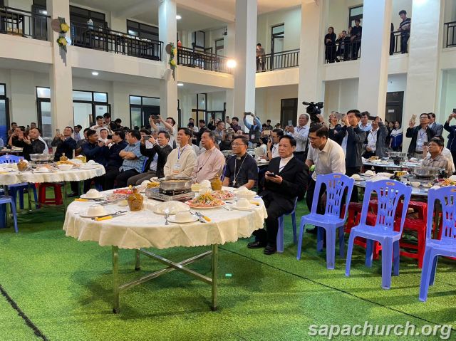 Sau Thánh Lễ mọi người đã chia sẽ với nhau bữa ăn tối ấm áp tình gia đình ở nhà ăn của Giáo Xứ Sapa.