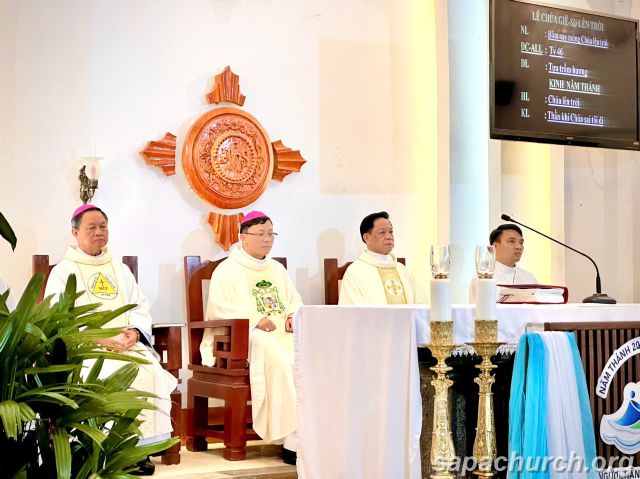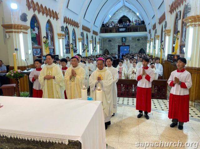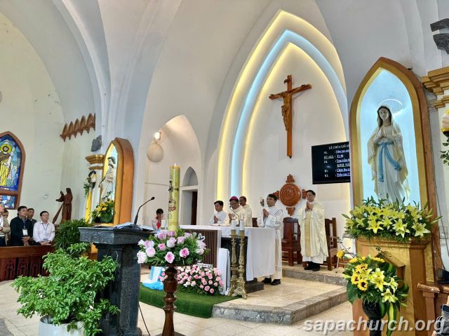 Thánh Lễ Trọng “Chúa Giêsu Về Trời” được bắt đầu lúc 17 giờ, chủ tế bởi Đức Cha Phaolô; cùng đồng tế với Ngài có Đức Cha Giuse Trần Văn Toản, Giám Mục Chính Tòa Giáo Phận Long Xuyên - Chủ Tịch Ủy Ban Mục Vụ Giáo Dân Trực Thuộc Hội Đồng Giám Mục Việt Nam, Cha Xứ Sapa Giuse Đỗ Đình Tôn - Quản Hạt Lào Cai – Lai Châu, Quý Cha Đồng Tế, Quý Tu sĩ nam nữ, Quý Tham Dự Viên Ủy Ban Mục Vụ Giáo Dân của 11 Giáo Phận trong Giáo Tỉnh Hà Nội, Quý Chức Hội Đồng Giáo Xứ cùng đông đảo anh chị em giáo dân Giáo Xứ Sapa.