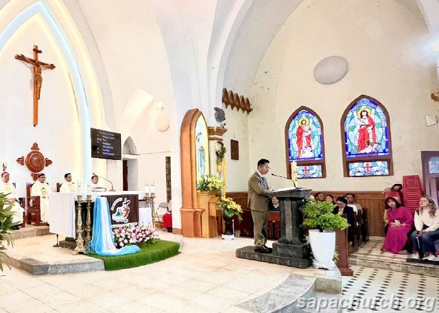 Ngài nói tiếp: Nhiều năm sau biến cố 1975, Giáo Hội Công Giáo ở Việt Nam nói chung và ở Miền Bắc nói riêng trải qua những năm tháng của Thập Giá, rất hạn chế cho Sứ Vụ Loan Báo Tin Mừng. Và vào năm 1998 là lần đầu tiên sau biến cố 1975, Ngài có dịp ra Miền Bắc thăm viếng một số Giáo Phận, và đến thăm Giáo Xứ Sapa này, Giáo Xứ không có Cha Xứ, 1 năm chỉ có vài Thánh Lễ khi có Quý Cha từ dưới xuôi lên. Tuy nhiên hiện nay đã khác, Giáo Phận Hưng Hóa và Giáo Xứ Sapa này càng ngày càng phát triển lớn mạnh về mọi mặt, nhất là về đời sống Đức Tin. Vì thế, Sứ Vụ Loan Báo Tin Mừng được mở rộng. Và  Sứ Vụ Loan Báo Tin Mừng này mời gọi tất cả các thành phần Dân Chúa cộng tác.